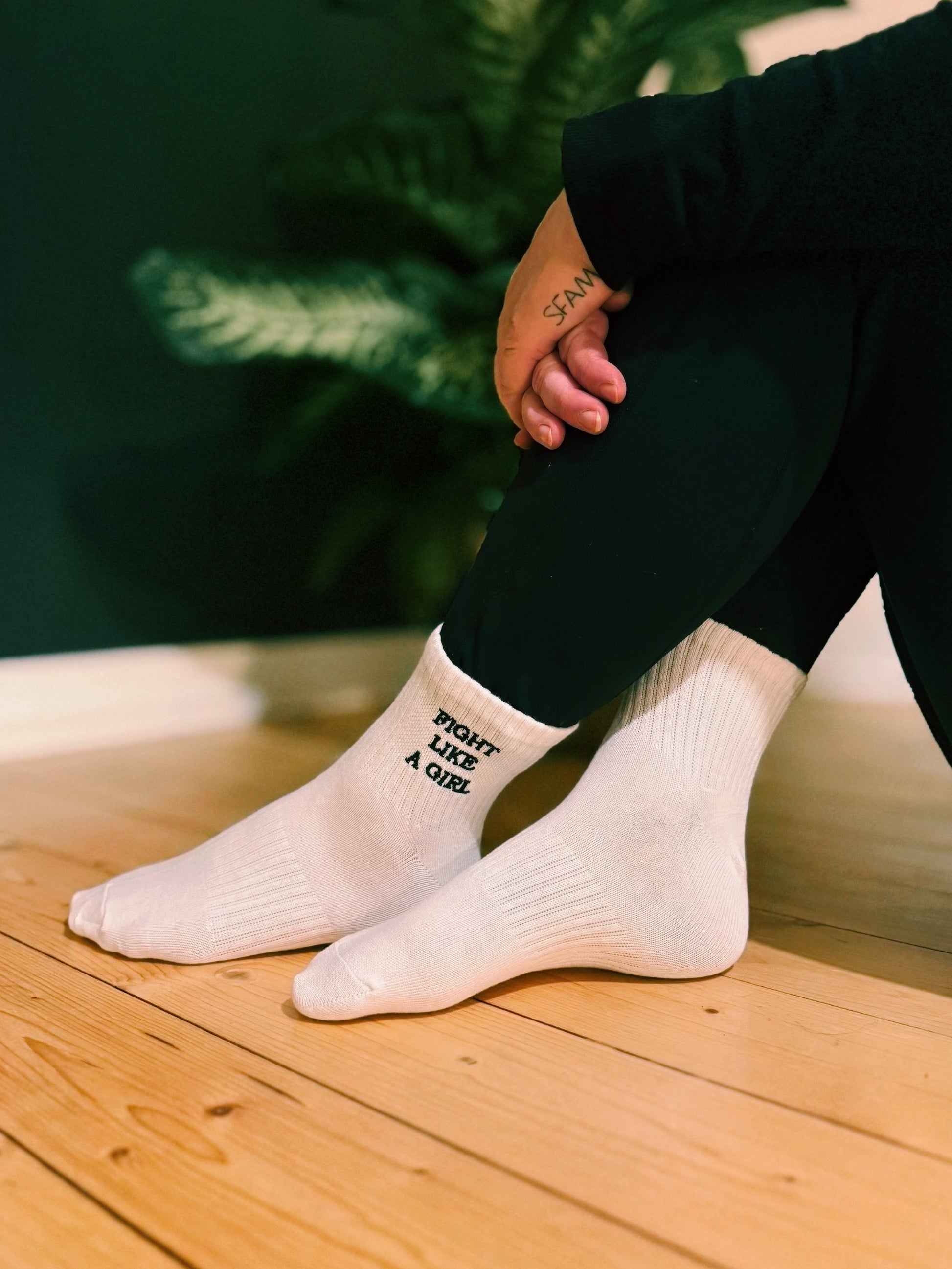 Unsere Socken sind perfekt für den Alltag, das Gym und jeden anderen Ort, an dem du stark auftreten willst - im wahrsten Sinne des Wortes. Die Crew Socks bestehen aus 100% Baumwolle und sind somit nicht nur angenehm zu tragen, sondern auch langlebig. Die Statements sind aufgestickt, was sie zu einem hochwertigen Blickfang macht.